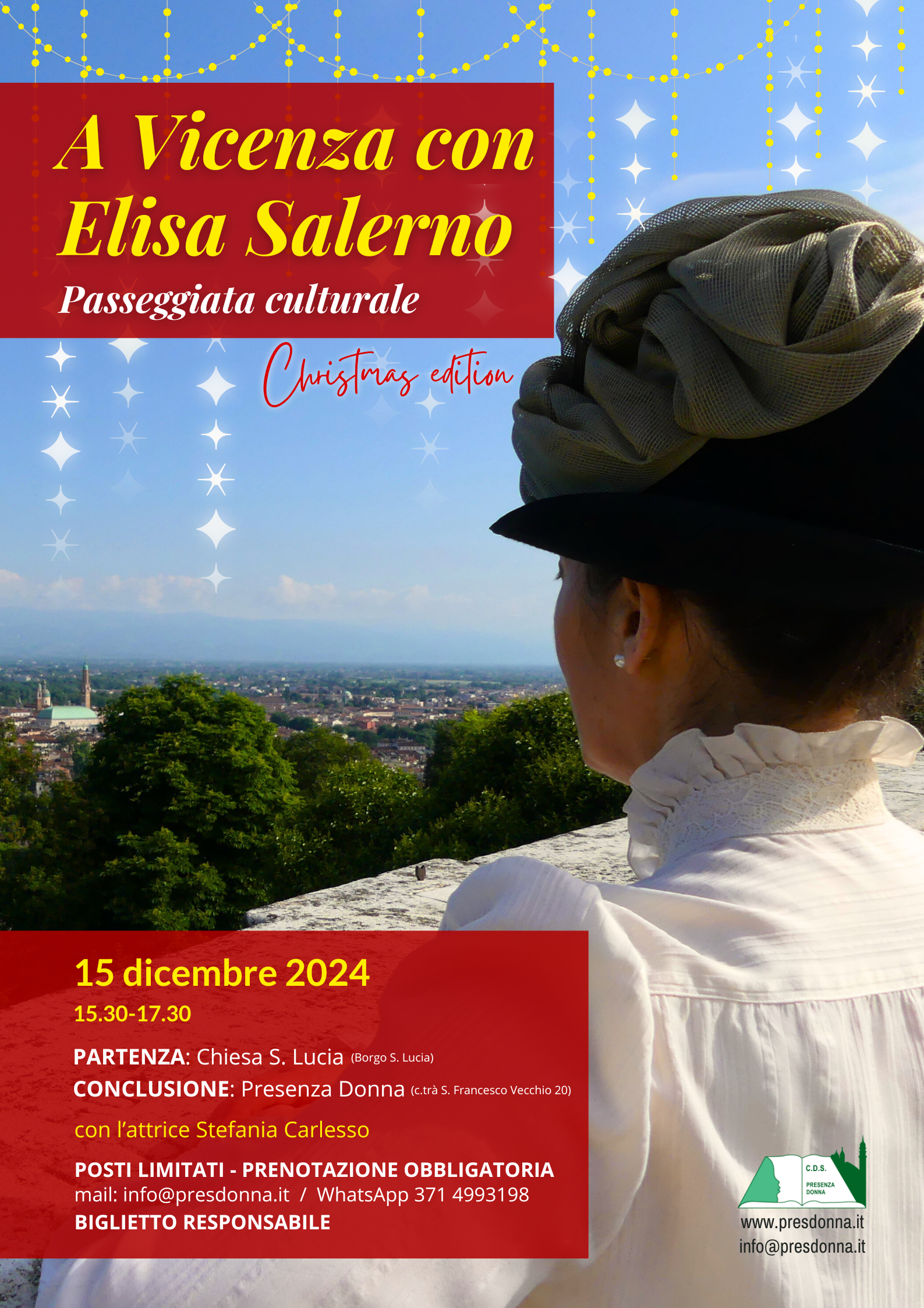 Domenica 15 dicembre 2024 torna l’opportunità di camminare “A Vicenza con Elisa Salerno”, in un caratteristico scenario natalizio!
