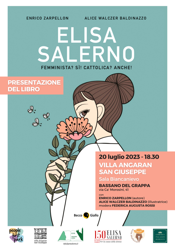 Giovedì 20 luglio 2023 appuntamento alle 18.30 presso Villa Angaran San Giuseppe, a Bassano del Grappa (via Ca’ Morosini, 41) per la presentazione della biografia a fumetti “Elisa Salerno. Femminista? Sì! Cattolica? Anche!” (qui la scheda del libro).