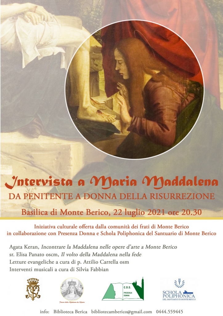 Giovedì 22 luglio alle ore 20.30 nella Basilica di Monte Berico, avrà luogo l’incontro dal titolo “Intervista a Maria Maddalena. Da penitente a donna della risurrezione”.