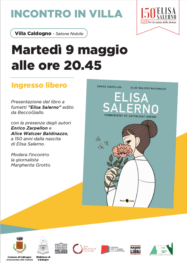 Martedì 9 maggio 2023 appuntamento alle 20.45 nel salone nobile di Villa Caldogno (via Zanella, Caldogno) per la presentazione di “Elisa Salerno. Femminista? Sì! Cattolica? Anche!”.