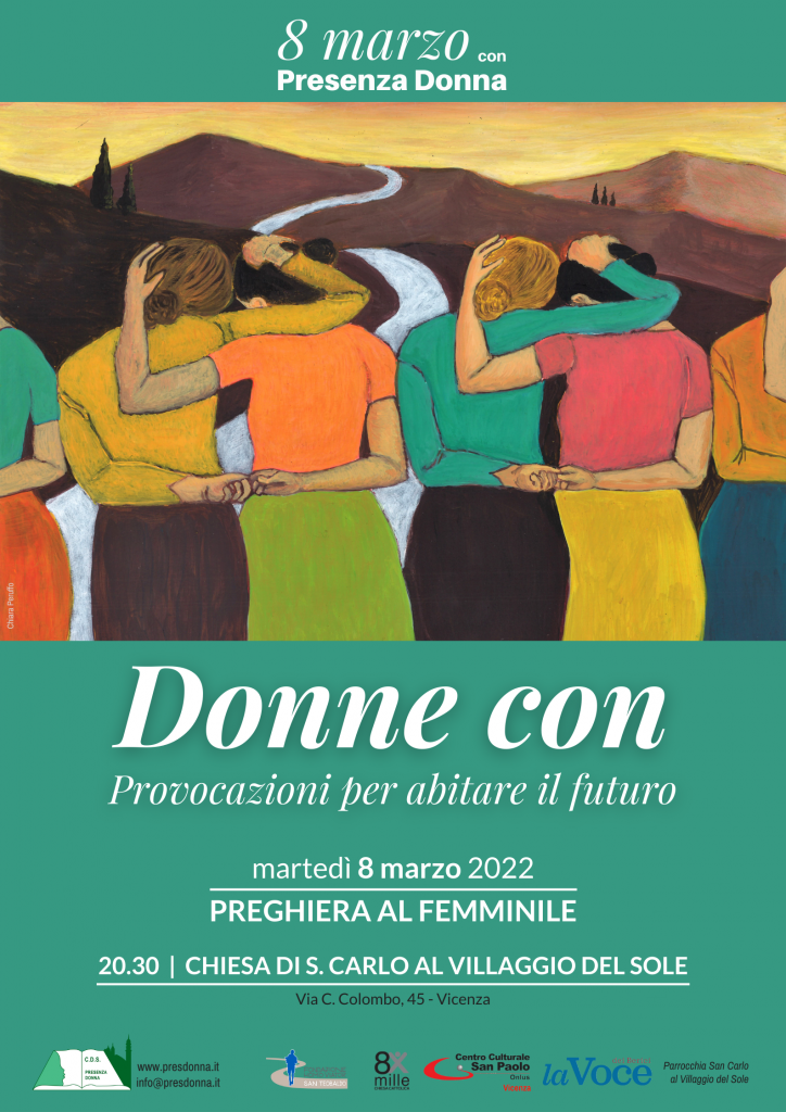 Martedì 8 marzo 2022 si rinnova il tradizionale appuntamento con la preghiera al femminile in occasione dell’8 marzo e della Giornata internazionale dei diritti della donna. Il titolo della preghiera di quest’anno è “Donne con. Provocazioni per abitare il futuro”.