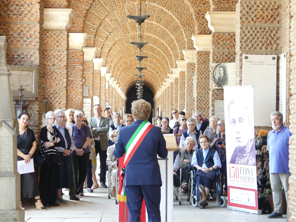 Le celebrazioni per il 150° anniversario dalla nascita di Elisa Salerno vivranno un momento specialmente significativo venerdì 16 giugno 2023, nell’esatto anniversario della sua nascita. Alle ore 11.00 presso il Cimitero maggiore di Vicenza si svolgerà infatti la cerimonia di traslazione delle spoglie di Elisa Salerno nel Famedio dei vicentini illustri. Un riconoscimento significativo da parte della città di Vicenza nella quale Elisa Salerno spese tutta la sua vita e le sue attività in favore delle donne, il più delle volte senza essere compresa.