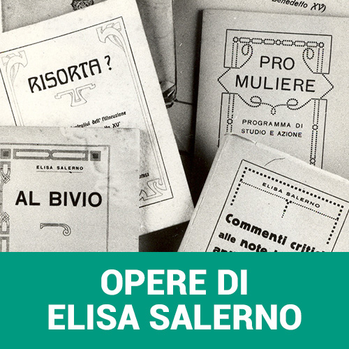 Il CDS Presenza Donna conserva e valorizza il Fondo archivistico Elisa Salerno. Nella sezione  corrispondente della Biblioteca puoi scoprire questo patrimonio e conoscere anche le tesi di laurea e gli studi che negli anni sono stati effettuati sulla Salerno, consultabili presso il CDS. Presenza Donna non smette di promuovere la (ri)scoperta di Elisa Salerno e del suo impegno attraverso pubblicazioni delle sue opere, di studi su di lei, e con iniziative di vario genere.