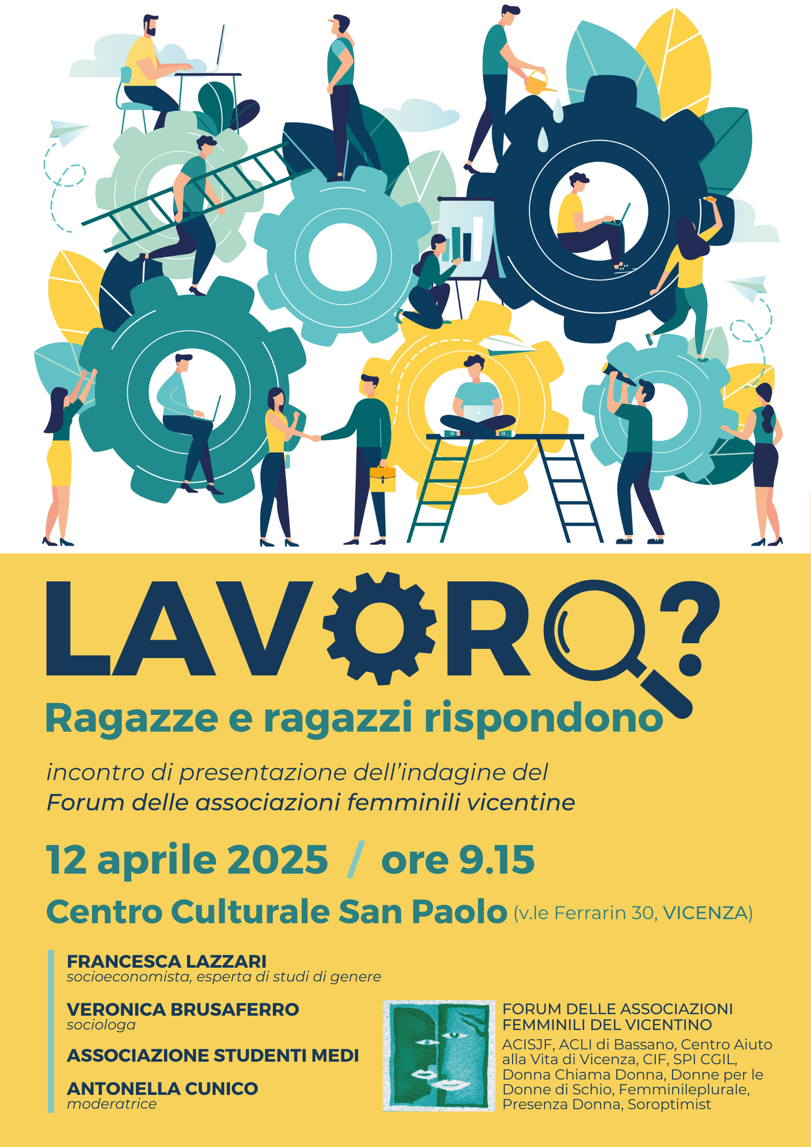 Sabato 12 aprile 2025, a partire dalle 9.15 presso il Centro Culturale San Paolo di Vicenza, il Forum delle associazioni femminili vicentine presenterà i risultati di un’indagine sul tema lavoro condotta fra giovani del territorio.